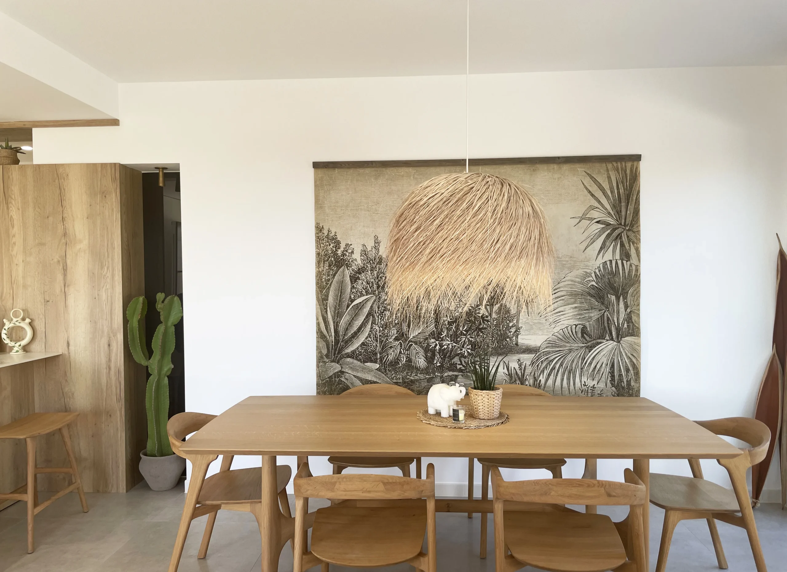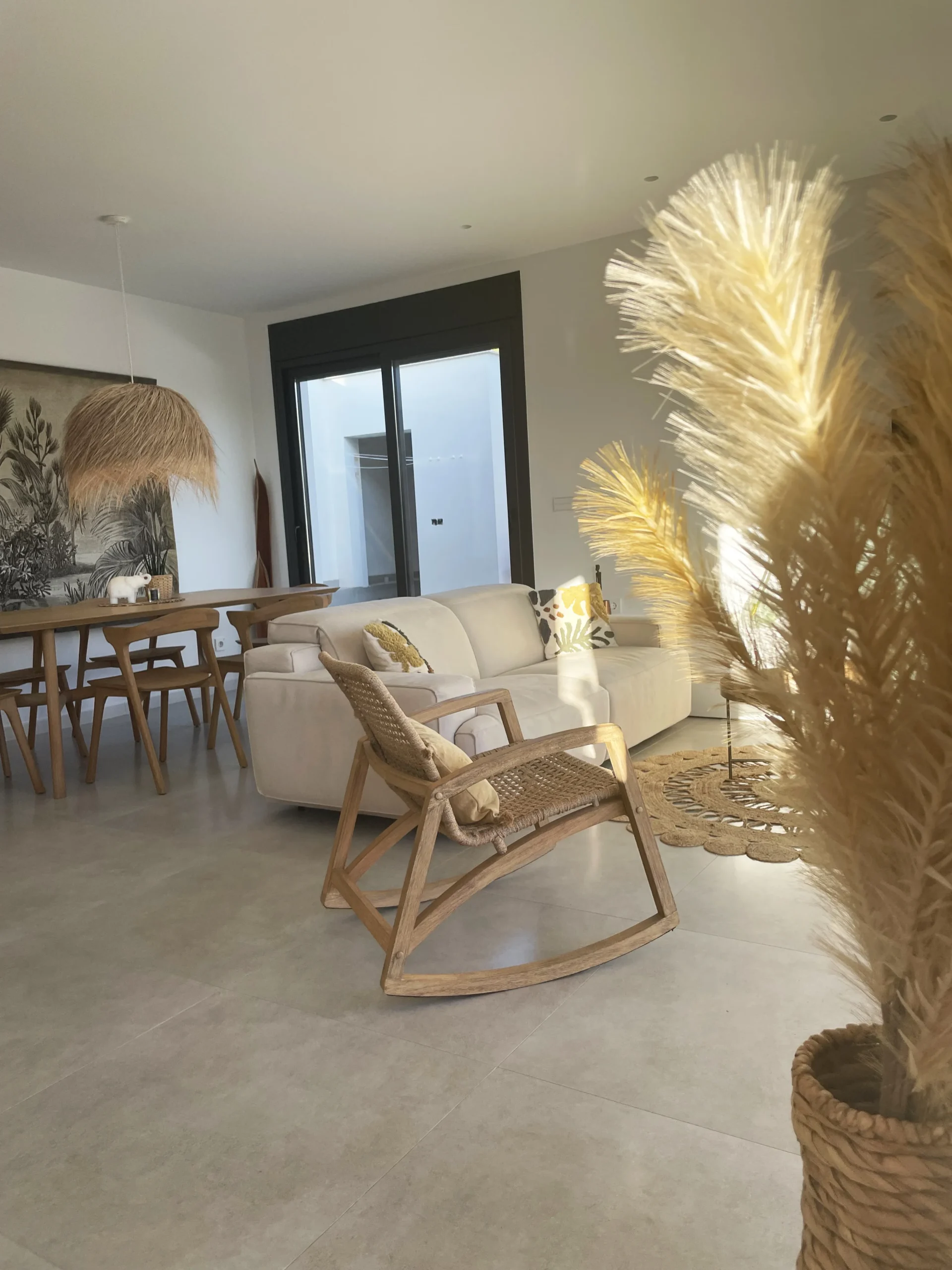 Los espacios se diseñaron para que cada uno de ellos aportara bienestar y confort a las personas que los habitan. Partimos del concepto de minimalismo cálido. Las maderas claras, las texturas suaves y los tonos neutros generan una atmósfera natural. Los elementos característicos del estilo Boho Chic, como son las fibras vegetales, el yute, los estampados botánicos y el uso de elementos artesanales complementan a la perfección la naturalidad que define esta vivienda.